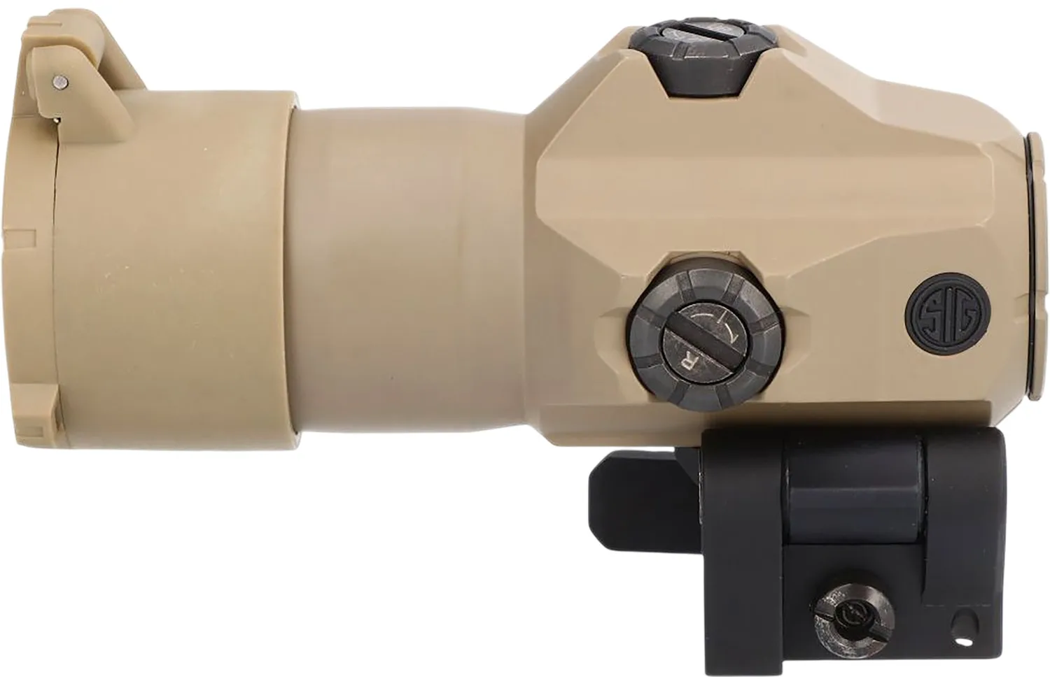 The JULIET4 4x Magnifier is designed to work as a stand-alone magnification solution or in conjunction with reflex optics. In conjunction with a reflex optic, the JULIET4 can be adjusted for height through the use of spacers. It has a PowerCam 90 Mount so it can be quickly flipped to the side for more immediate, close quarters scenarios or deployed rapidly to bring targets four times closer. Its quick release mount comes with built-in recoil lugs for repeatable zero. The JULIET4 has a front and rear thread-in lens protector to keep it secure from the elements.
